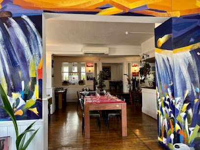 Mediterranean restaurant with a patio garden and airy rooms decorated with Ecuadorian art.